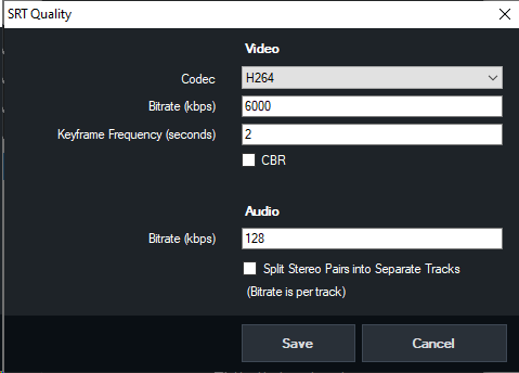 Ticking this box will enable constant bit rate mode on the SRT stream.